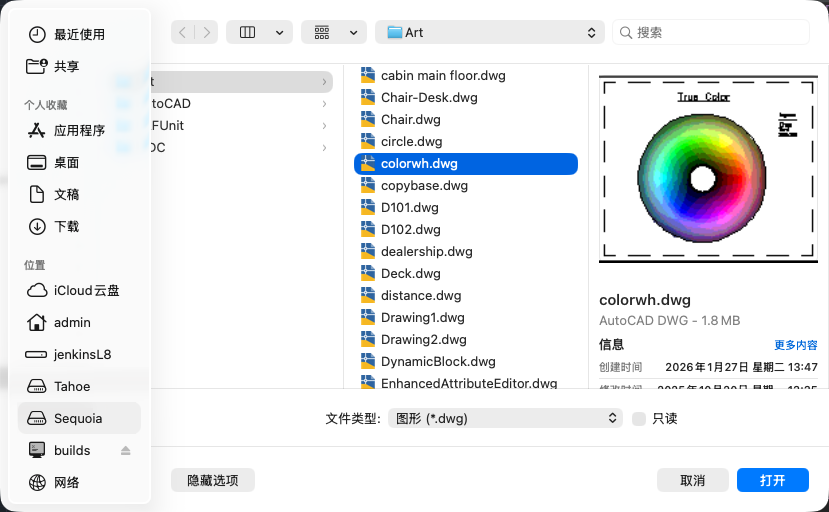 多个命令会显示标准文件选择对话框,可以通过该对话框浏览本地和网络驱动器上的文件和文件夹。以下是常用选项的列表,但每个对话框可能略有不同。