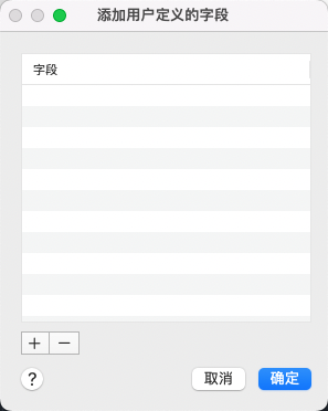 用户定义的字段使用“用户定义的字段”对话框创建并编辑。当在“打印戳记”对话框中选择“添加/编辑”按钮时,将显示“用户定义的字段”对话框。