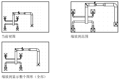 “范围缩放”将用尽可能大的比例来显示视图,以便包含图形中的所有对象。此视图包含已关闭图层上的对象,但不包含冻结图层上的对象。