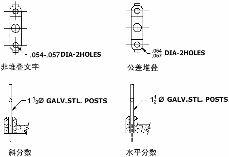 表示分数或公差的字符可按照多种标准设置格式。
