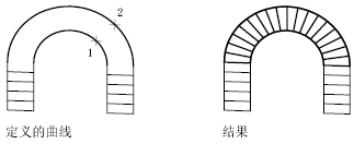 对于开放曲线,将基于曲线上指定点的位置构造直纹网格。