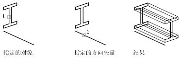 可以将使用此方法创建的网格看作是指定路径上的一系列平行多边形。原对象和方向矢量必须已绘制,如下图所示。