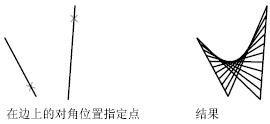 EDGESURF 命令可创建一个网格,此网格近似于一个由四条邻接边定义的孔斯曲面片网格。孔斯曲面片网格是在四条邻接边(这些边可以是普通的空间曲线)之间插入的双三次曲面。