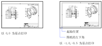 打印偏移指定相对于可打印区域的左下角(原点)或图纸边界的打印区域偏移。
