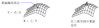 编辑多边形网格的各个顶点,该多边形网格可视作 M x N 阵列,其中 M 和 N 是 3DMESH 中指定的维数。SURFTAB1 和 SURFTAB2 系统变量存储 RULESURF、TABSURF、REVSURF 和 EDGESURF 命令的 M 和 N 值。