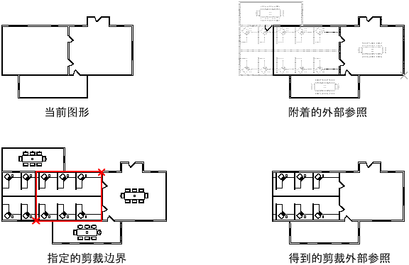可以将剪裁边界指定为显示外部参照图形或块参照的有限部分。