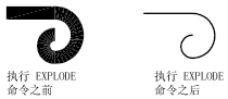 一次删除一个编组级。如果一个块包含一个多段线或嵌套块,那么对该块的分解就首先显露出该多段线或嵌套块,然后再分别分解该块中的各个对象。