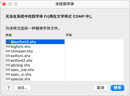 打开缺少字体文件的图形时,将显示此对话框,使您可以为样式选择替换字体文件。