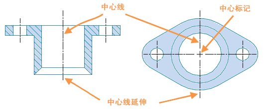 中心标记和中心线通常是对孔中心和对称轴的尺寸标注参照。
