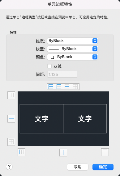 工具集::在已选定表格单元并打开“特性检验器”选项板的情况下,单击“全部”。在“单元”部分下,单击“边框样式”。