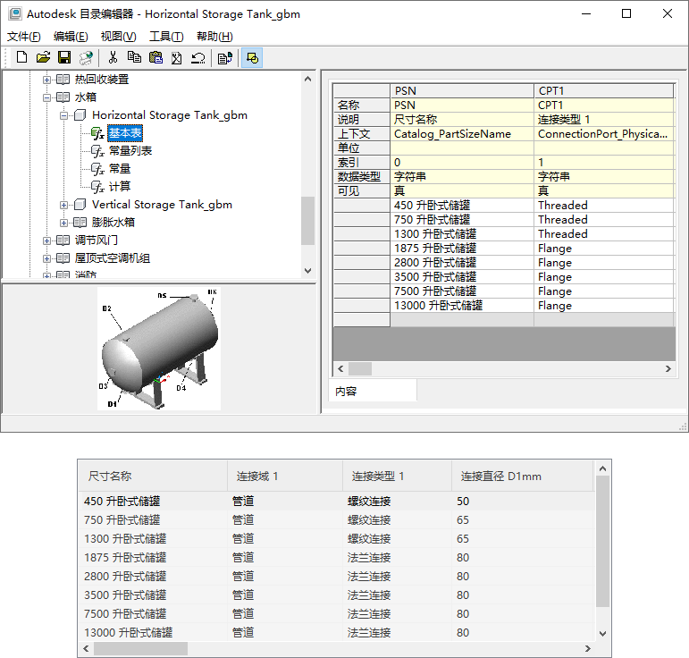 在目录编辑器中和“添加”对话框的零件尺寸表中查看零件尺寸