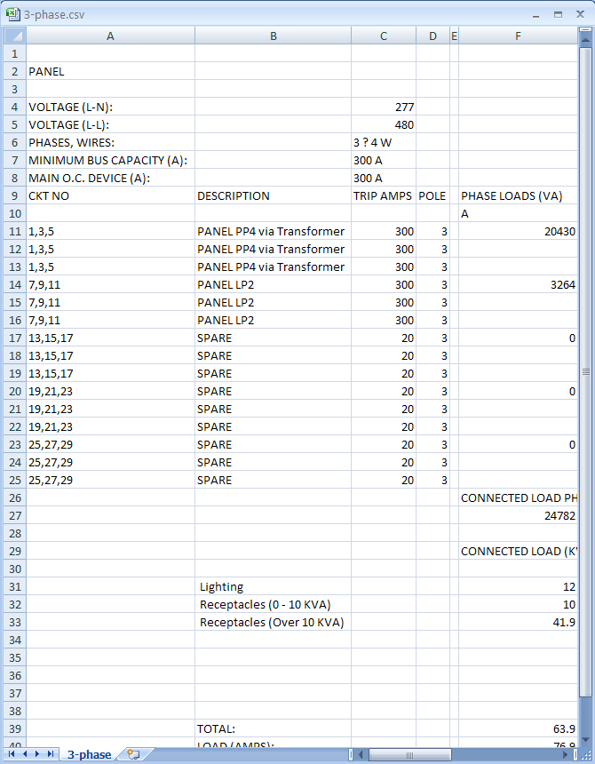 将配电盘明细表输出为 Microsoft Excel 电子表格后,可以很轻松地进行管理。在 Excel 中打开该电子表格后,可以修改、删除和添加表、单元格和值。