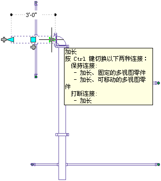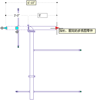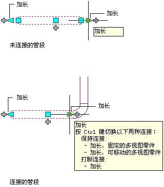 )。加长夹点将管段约束到其当前角度,这对于加长已放置的管段特别有用。