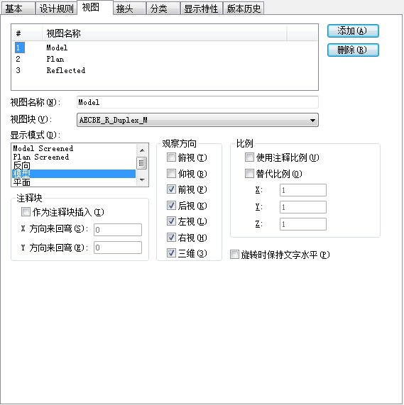 提示: 为了确定用于显示基于样式的对象的视图块,软件将识别当前图形中的活动显示模式(由活动显示配置确定)和活动观察方向,然后搜索具有相同指定显示模式和观察方向的样式视图。如果找到了一个匹配视图,将使用关联的视图块显示对象。如果找到了多个匹配视图,将用所有关联的视图块显示对象。如果未找到任何匹配视图,将不会显示对象。