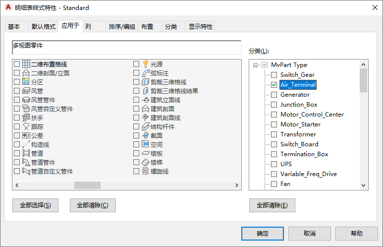 由于软件中的多数设备是多视图零件,许多设备明细表样式使用分类来确保仅以所需零件类型数据填充明细表。
