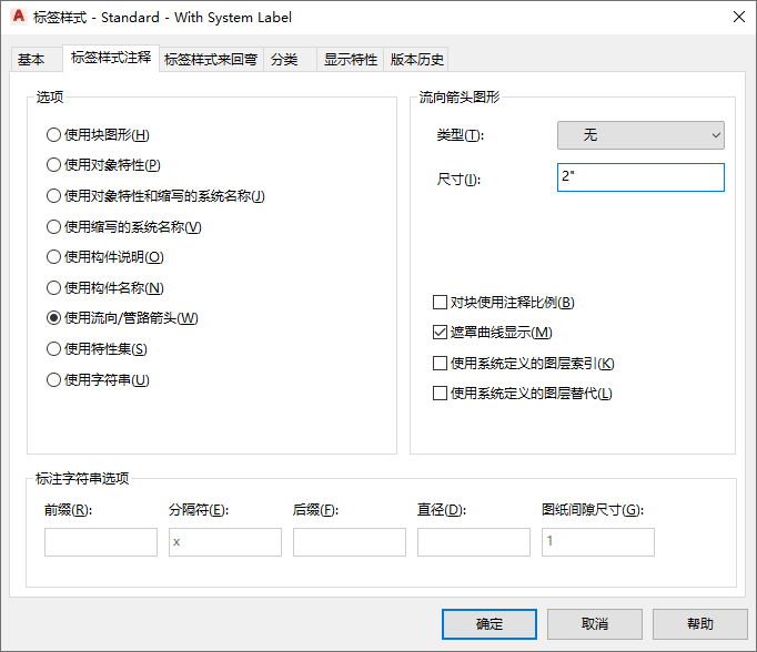 您可以使用“标签样式注释”选项卡上的选项指定如何在标签中显示对象信息。