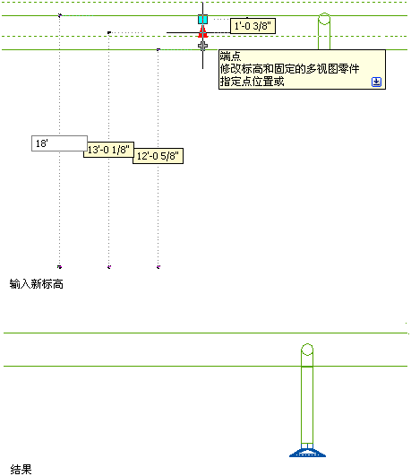 下图说明了如何修改风管管段的标高。