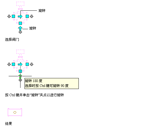 将管道内嵌零件、管件和接头沿夹点指示的方向旋转 180 度或 90 度。