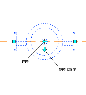 旋转夹点将零件旋转 180 度。翻转夹点可使零件(内嵌或定位多视图零件、管件和接头)的方向与流向相同。