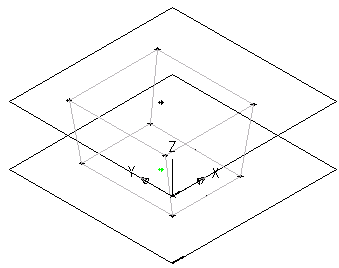 - 在建模区域中,选择 XY 平面作为参照工作平面,在 XY 平面下方拖动光标,然后输入 12" (305 mm) 作为偏移距离。