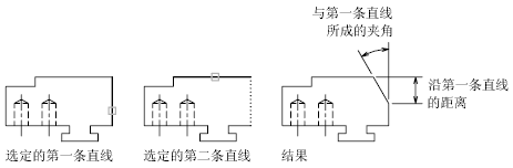 可以通过指定倒角一侧的距离和倒角角度为拐角添加倒角。