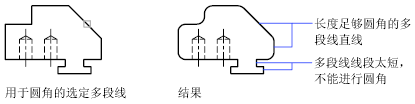 只能对长度足以容纳圆角的线段执行圆角操作。