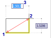 在绘图区域中,单击点以用作矩形的对角点(上图中的 2)。