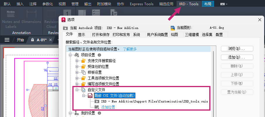 将局部自定义 (CUIx) 文件添加到 Autodesk 项目的设置