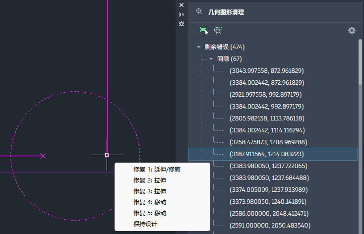 “几何图形清理”会扫描图形以修复常见的几何图形错误。