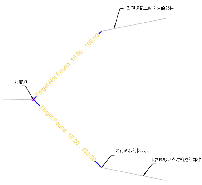 | 情况 | 指定适用于此部件的条件。如果在最大距离内找到标记点,则会处理“已找到”条件。如果未设置标记点名称或未在最大距离内的桩号处找到标记点名称,则处理“未找到”条件。 | 已找到/未找到 | 已找到 |
