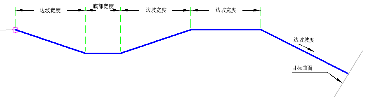 DitchWithBermInFill 部件使用预定义的几何图形放置沟渠,并按照填方和挖方条件创建护道。