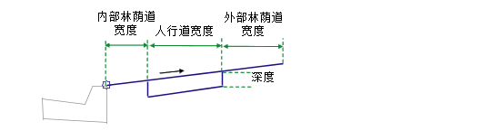 将从附着点沿给定的坡度向外插入内部草地带、人行道和外部草地林荫道连接。通过指定零宽度可以忽略草地带。