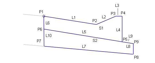 此部件用于生成简单路缘和边沟的造型,附着点位于 (a) 边沟(或边缘)的内侧边缘,或 (b) 路缘的后部。路缘面被指定一个较小的固定宽度,使路缘面为非垂直面。
