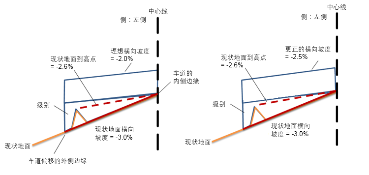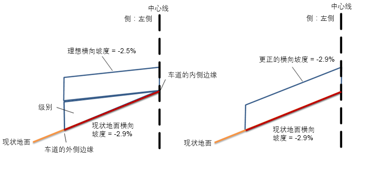 更正的横向坡度始终设置为等于理想横向坡度。