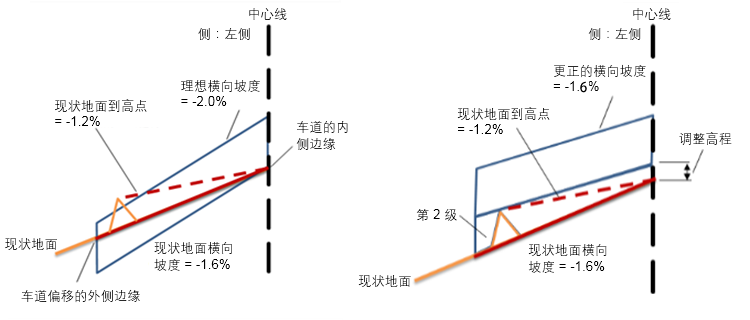 更正的横向坡度将设置为等于理想横向坡度。