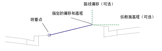 附着点位于连接的开始处。连接方向由相对于附着点的指定偏移和高程的位置决定。