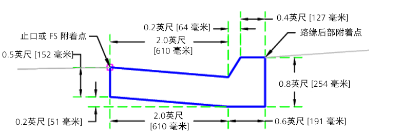 CaltransCurbs 部件可以插入连接,以基于 Caltrans 标准平面 RSP A87A 创建路缘和边沟。