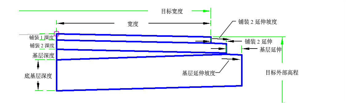 | 基层延伸 | 超出铺装 2 的延伸。 | 数字(非负数) |