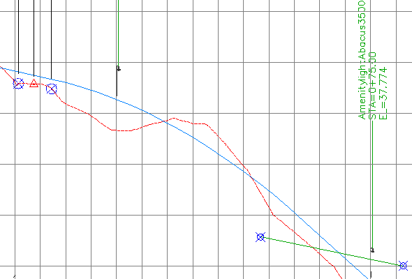 您可以将多个对象(例如 AutoCAD 点、实体、块、多视图块、三维多段线、几何空间点、要素线和测量地物)投影到纵断面图上。您将在本练习中使用的过程可以应用于这些对象中的任何一个。