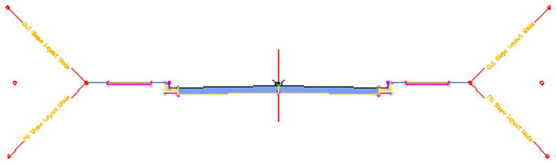 - 单击过渡车道左上边缘处的标记点,以绘制路缘、人行道和边坡部件的镜像。