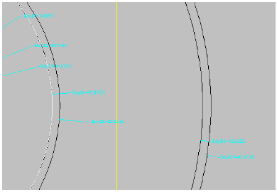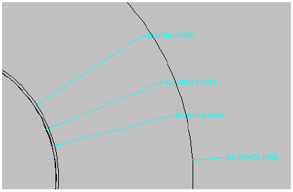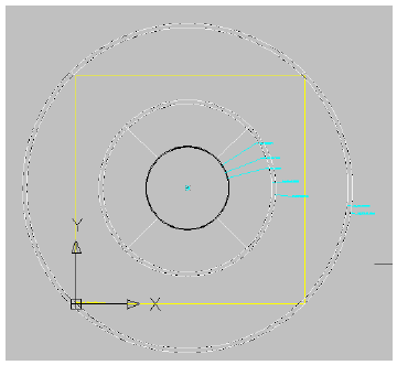 “圆形”。按照与步骤 7 相同的操作步骤绘制圆形纵断面。您可以使用中心 OSNAP 确保此纵断面的中心与“井口”工作平面中纵断面的中心匹配。将半径设定为仅略大于“井口”工作平面圆形纵断面,以使该纵断面的选择变得容易。此时,实际半径无关紧要。将显示圆形纵断面。