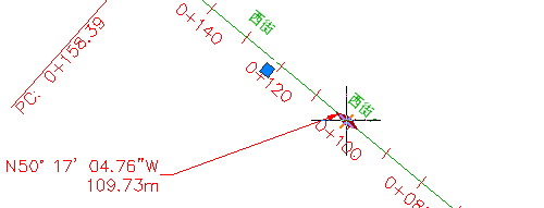 请注意,已选择“大街”和“东街”路线及其桩号标签。已选择这些标签,因为它们是在路线所在的外部参照图形中创建的标签。如果已通过外部参照创建对象,则您仅可在源图形中编辑其标签。