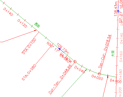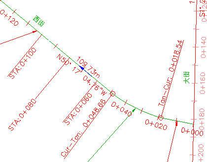 将仅更改桩号标签“0+060”的标签样式。“西街”上其余的主桩号标签仍保持其当前样式不变。