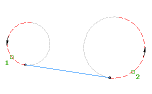 该图元与两条附着曲线 (2) 均保持相切。该图元存在四种可能的解决方案,具体取决于曲线的方向。