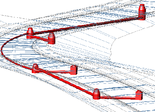 管网对象用于管理互相关联以表示管道系统的管道对象和结构对象的集合。通常情况下,管道与结构互相连接,从而形成单个管道段或管网。管网中的管道和结构对象可以与参考路线和/或曲面(它们为其提供了桩号偏移和高程数据)相关联。管网中的每个零件均可以参考图形中任何给定的曲面或路线。
