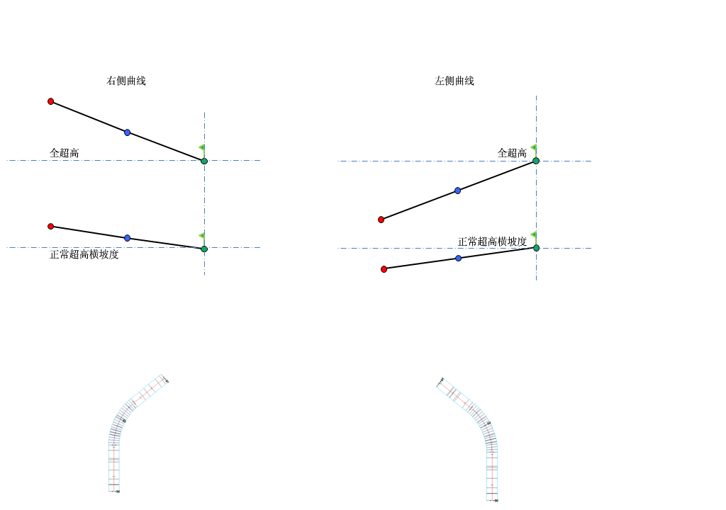 右侧轴(无中间带的单向横坡路面上的超高)