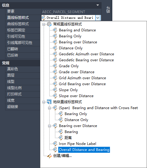 还可以通过从可用样式下拉菜单中选择“创建/编辑”来从 AutoCAD“特性”选项板访问“标签样式生成器”。在“标签样式控制”中,选择“编辑当前选择”。