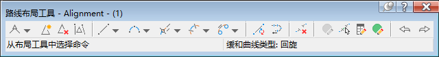 当前选定路线的名称将显示在工具栏顶部。单击某个图标时,当前命令将显示在工具栏底部。在对路线进行夹点编辑或输入其他命令时,工具栏将保持打开状态。如果删除当前选定的路线或者单击工具栏右上角的“X”按钮,则工具栏将关闭。