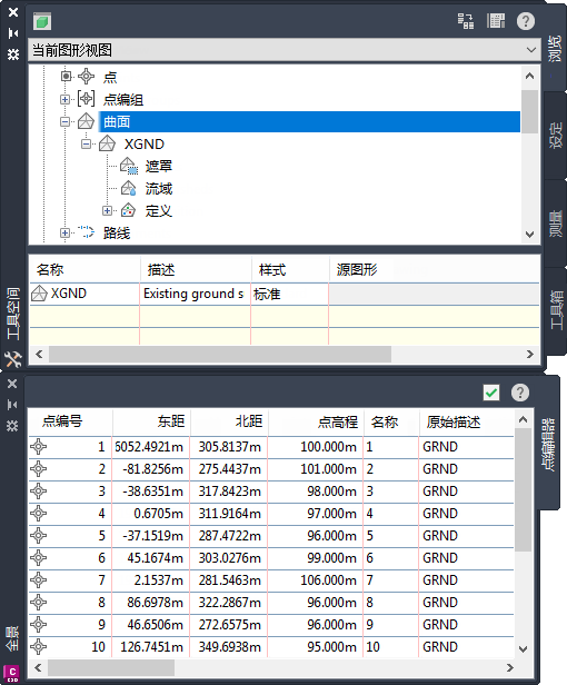 “工具空间”窗口和“全景”窗口共享若干要素。