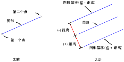 可以按照指定的距离偏移现有地物。正值表示偏移至右侧;负值表示偏移至左侧。